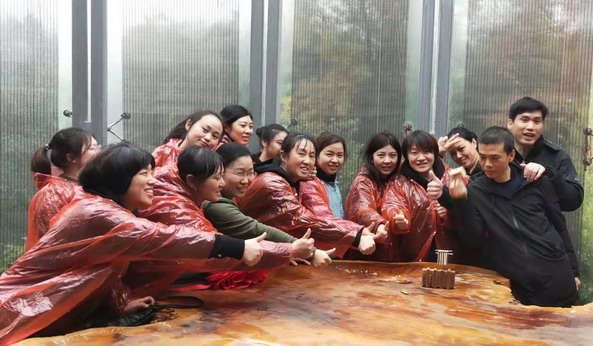 11月17日-18日,在集團牽頭組織下,編織事業(yè)部61名非定額員工至常州丫髻山、茅山寶盛園舉辦了為期兩天的拓展訓練活動?;仡櫾谟柧氈惺艿降奶魬?zhàn)和磨練,感受頗深。 在訓練場上,大家忘記了年齡,忘記了崗位,忘記了身份,全身心投入到了訓練中。在教練的安排下,團隊分成了4個組:青春隊、海棉寶寶隊、黑鷹隊、戰(zhàn)狼隊。團建中,大家在隊長的帶領下,高唱隊歌、力喊口號。此次拓展項目有羅馬炮架、劃龍舟、有軌電車、神筆馬良、擊鼓顛球、非洲鼓晚會、極速60秒、七巧板等。 17日,第一個拓展項目是 “羅馬炮架”。4個小團隊在一個固定的戰(zhàn)場里面,利用資源扎成一個羅馬炮架,所有隊員利用扎好的羅馬炮架,發(fā)送水彈攻擊對方隊員。這個項目充分體現(xiàn)了籌備、策劃、指揮、分工等的重要性。一個好的計劃和決策可以使工作實施起來事半功倍,也可以使工作有步驟的進行。因此在任何一項工作前,都應該制定合理的計劃和明確的分工。 接著,“劃龍舟”。劃龍舟不僅是一種古老的漢族民俗活動,還是一項振奮人心、具有競技性的運動,需要大家齊心協(xié)力,而協(xié)力的關鍵是聽從鼓手的指揮,這種組織形式更有助于培養(yǎng)集體主義精神。一個成功的企業(yè)需要“掌舵手”及“槳手”的共同努力與合作,進而才能達到共享、共進、共贏的企業(yè)愿景! 然后,“有軌電車”、“神筆馬良”、“擊鼓顛球”,都需要團隊明確目標、步調一致、有效溝通、精誠合作。同樣,在工作中大家都應該樹立共同的目標和信念,相互尊重、體諒、信任、團結和促進,這樣一個集體才有足夠的凝聚力,才能成為一個戰(zhàn)無不勝、攻無不克的鋼鐵團隊。晚飯過后,大家一起參加了“非洲鼓晚會”。學完基礎的打鼓方法后,各隊發(fā)揮創(chuàng)造力編排節(jié)目并進行了表演。 18日,雖然常州下了一天的雨,但不影響大家拓展的心情。大家齊聚茅山寶盛園開啟了第一個項目“極速60秒”。此項目要大家在很短的時間內收集大家的信息并作出判斷分析,最終快速給出較為合理的決策方案。 本次拓展的最后一個項目“七巧板”。該拓展項目將一個團隊分成七個小組,在規(guī)定時間內,七個組共用一副七巧板完成不一樣的任務,每組完成任務都會有積分,團隊總分達到1000分,才算項目完成。游戲一開始,大家都想著先完成自己小組的任務,導致整個場面一度失控,在多次調整戰(zhàn)略后,大家最終找到了解決辦法,遺憾的是由于時間的原因,項目失敗。其主要原因是大家都以各個小組的利益為重,卻忽視了集體的大目標。水漲船高的道理大家都明白,但是一旦跟自己的利益結合在一起時,大家卻往往忽視。在工作中,我們通常潛意識里往往想到的只是自己的部門,各自為戰(zhàn),往往不會站在公司的角度考慮一些問題。其實只要大家齊心協(xié)力,以公司整體目標為出發(fā)點,那么所有部門的效率將會提升。 這次拓展,是一次身心的大洗禮,是進一步推動我們全力以赴做好各項工作的動力。它不僅僅是簡單的拓展訓練,還是一種思維、一種協(xié)作、一種溝通的鍛煉,同時也是一種文化、一種精神、一種理念的傳播。(文/編織事業(yè)部 崔岳屹)