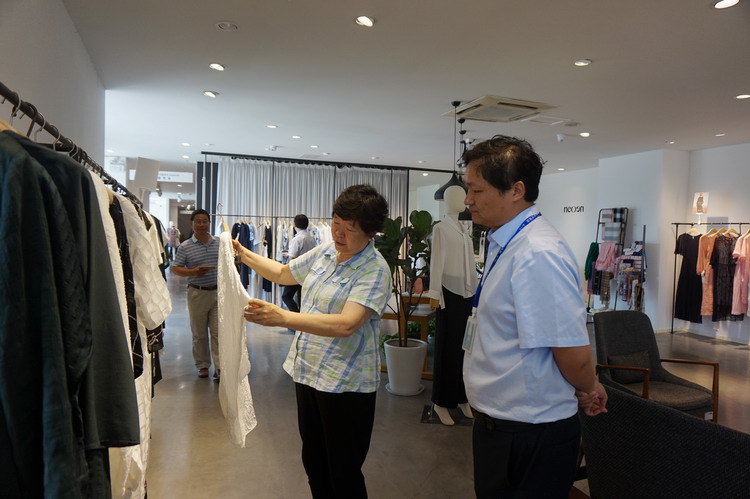 7月19日,江蘇省紡織工業(yè)協(xié)會(huì)會(huì)長(zhǎng)謝明、副秘書長(zhǎng)潘捷、江蘇省服裝協(xié)會(huì)副秘書長(zhǎng)周燕和張嫻、海安市國(guó)土資源局局長(zhǎng)蘇建華等一行領(lǐng)導(dǎo)蒞臨華藝指導(dǎo)。集團(tuán)董事長(zhǎng)邰衛(wèi)國(guó)、人力資源與企管中心總經(jīng)理葛坤鋒等參加了接待。 首先,在集團(tuán)會(huì)議室,邰總向謝會(huì)長(zhǎng)一行介紹了華藝的發(fā)展歷史、商業(yè)模式、運(yùn)營(yíng)形式以及自主女裝品牌“弄影”的主要發(fā)展情況。在聽完介紹后,謝會(huì)長(zhǎng)對(duì)弄影的發(fā)展表示了肯定與欣賞并在經(jīng)營(yíng)模式、消費(fèi)群體、銷售渠道、款式設(shè)計(jì)等方面提出了相關(guān)指導(dǎo)意見。邰總對(duì)謝會(huì)長(zhǎng)的意見表示贊同和衷心感謝。 最后,在葛總的帶領(lǐng)下,謝會(huì)長(zhǎng)一行人參觀了華藝品牌工廠直營(yíng)店——弄影女裝區(qū)。葛總從弄影女裝的材質(zhì)、工藝、款式等方面向謝會(huì)長(zhǎng)一行做了詳細(xì)介紹。(文/人力資源部 陳萍萍)