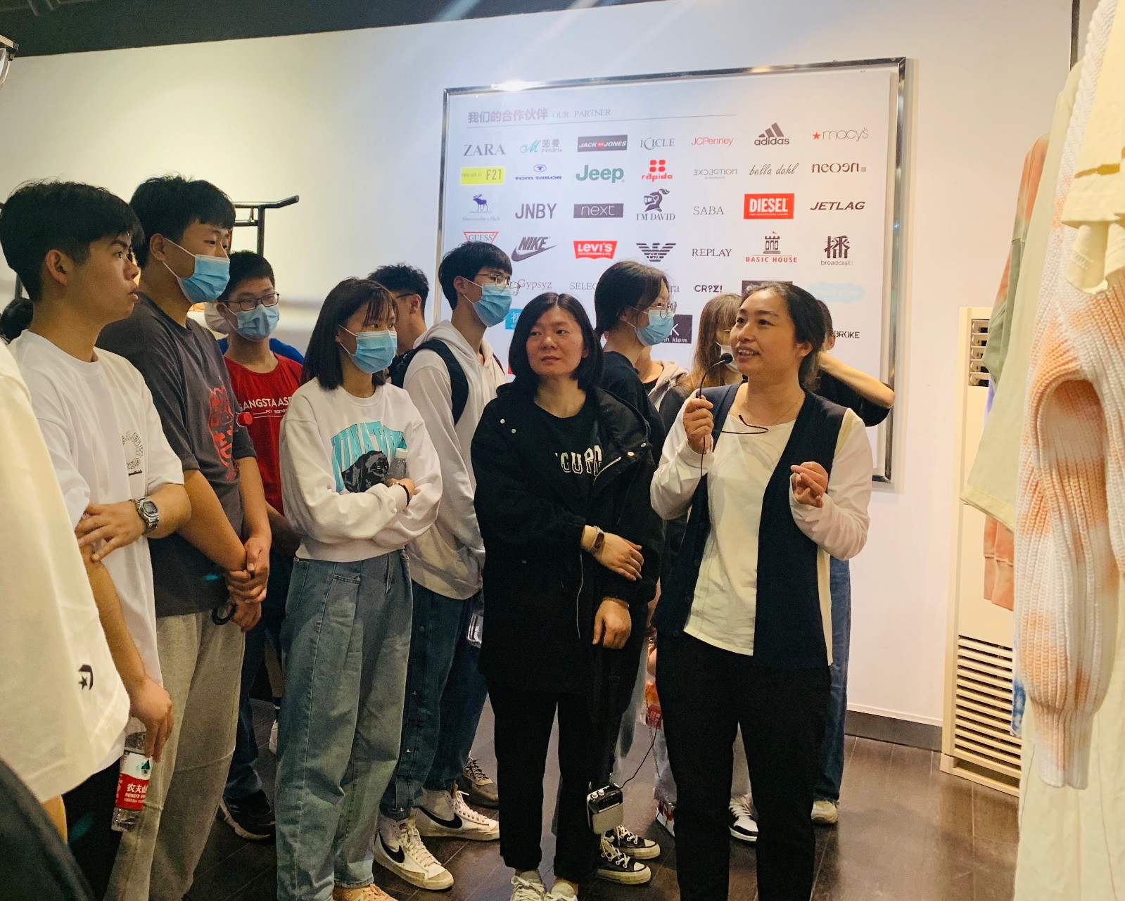 此次的參觀(guān)活動(dòng)旨在讓學(xué)生們更直觀(guān)的了解服裝生產(chǎn)流程和生產(chǎn)工藝,同時(shí)也是幫助學(xué)生們走進(jìn)企業(yè)、了解企業(yè)。師生們首先在多功能廳觀(guān)看了企業(yè)宣傳片,韓經(jīng)理向?qū)W生們重點(diǎn)介紹了企業(yè)的發(fā)展情況、校園招聘崗位需求以及大學(xué)生培養(yǎng)路徑等內(nèi)容。隨后由人力資源部周敏帶領(lǐng)大家參觀(guān)了集團(tuán)展廳、編織、扎染、特藝三個(gè)事業(yè)部的展廳及工藝車(chē)間。在扎染展廳,周莉詳細(xì)的介紹了每件衣服的不同工藝手法,師生們對(duì)扎染效果感到非常好奇,并且產(chǎn)生了濃厚的興趣。
