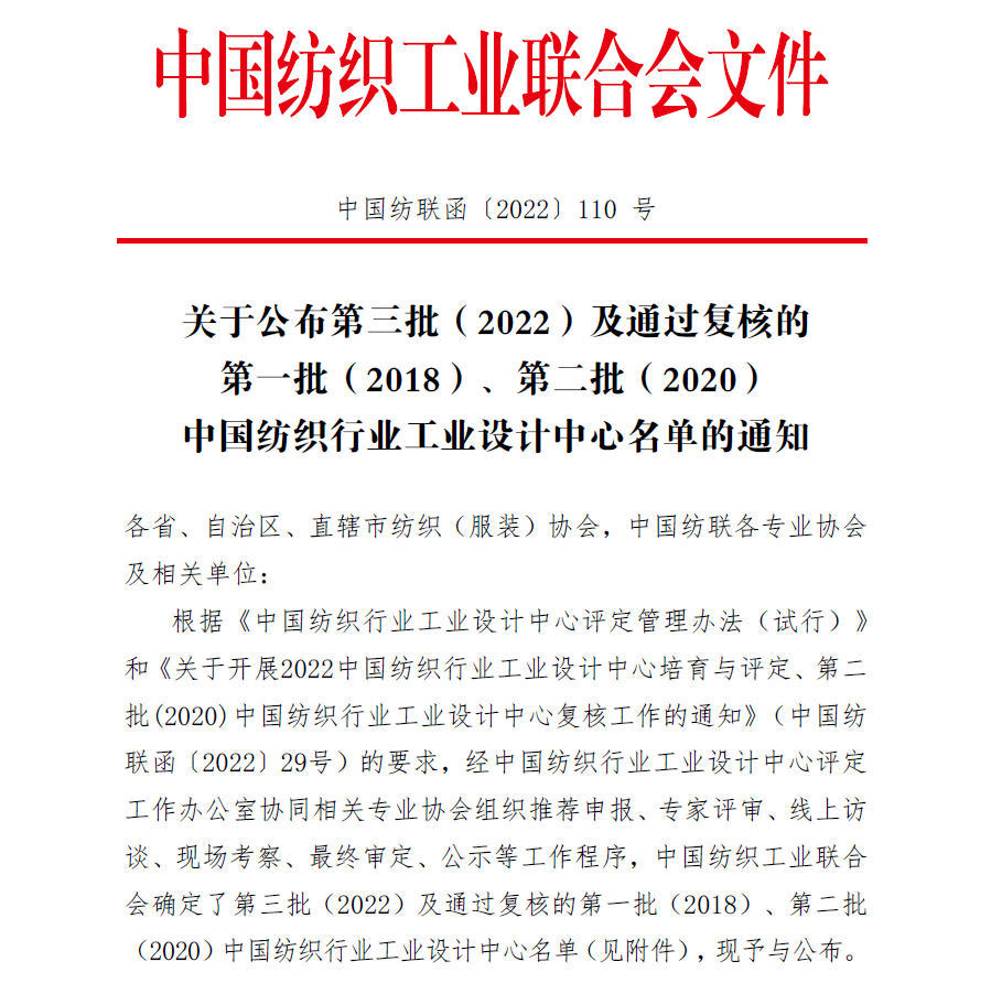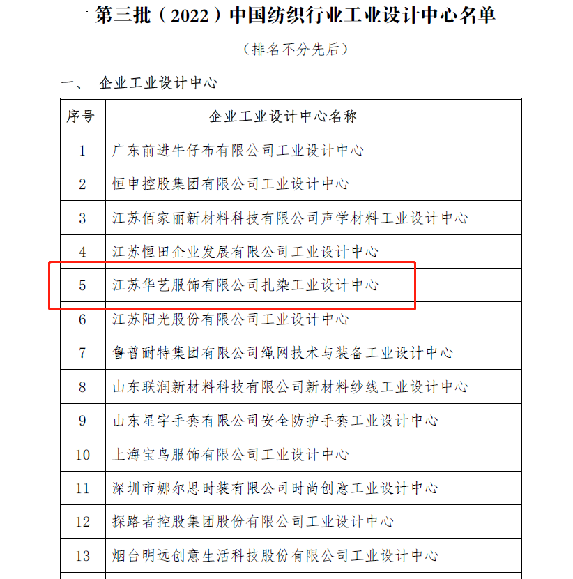江蘇華藝獲評(píng)第三批中國(guó)紡織行業(yè)工業(yè)設(shè)計(jì)中心 |