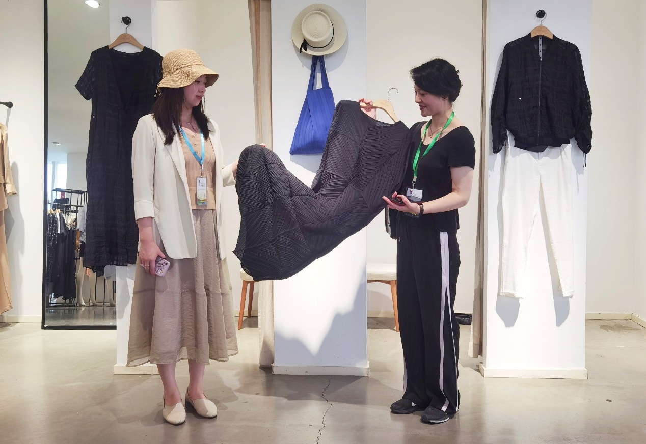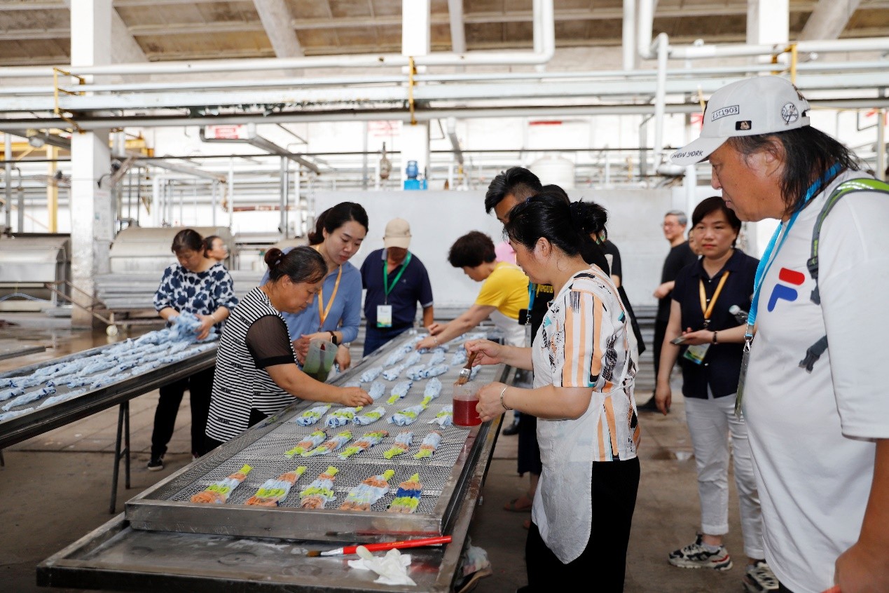 7月8日下午,2022年度“美麗南通行”南通文藝界走進海安采風創(chuàng)作活動一行60人來我司參觀采風。集團藝術(shù)總監(jiān)顧鳴、人力資源部經(jīng)理韓加梅、人事主管周敏熱情接待了來賓。 顧鳴總監(jiān)向市文聯(lián)領(lǐng)導和藝術(shù)家們介紹了江蘇華藝集團作為“南通扎染”領(lǐng)軍企業(yè),是國家藝術(shù)染整與現(xiàn)代扎染產(chǎn)品開發(fā)基地、國家藝術(shù)染整與現(xiàn)代扎染流行趨勢研究中心、南通市非物質(zhì)文化遺產(chǎn)傳承基地。40多年來,華藝聚焦非遺 “專精特新”工藝時裝細分市場,將“扎染”等非遺工藝深度融入當代生活,在為眾多優(yōu)秀原創(chuàng)品牌提供非遺時尚化研發(fā)支撐的同時,還依靠數(shù)字化、智能化手段不斷提高非遺產(chǎn)業(yè)化、標準化水平。 來賓們先后參觀了集團展廳,扎染展廳、扎花車間、染色車間、品牌工廠店。廠區(qū)美麗的風景、具有藝術(shù)染整工藝特色的服裝服飾產(chǎn)品、生產(chǎn)車間技藝風采等引得大家不時駐足拍照,用鏡頭記錄下“非遺時尚,華藝扎染”的獨特魅力。(文/人力資源部 周敏)