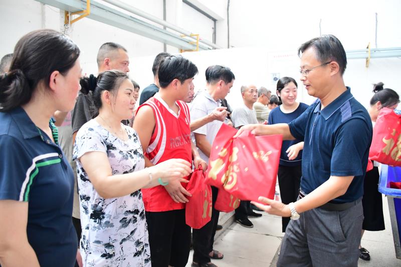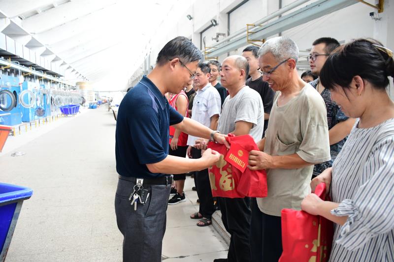 8月20日下午,胡集街道黨工委副書(shū)記、總工會(huì)主席王希成等一行,深入扎染事業(yè)部生產(chǎn)一線,慰問(wèn)奮戰(zhàn)在高溫的一線員工,并向他們發(fā)放了夏季防暑降溫物品,扎染事業(yè)部總經(jīng)理仲見(jiàn)陽(yáng)參與了接待。 慰問(wèn)過(guò)程中,王書(shū)記詳細(xì)詢問(wèn)了新冠疫情發(fā)生以來(lái),公司生產(chǎn)運(yùn)行情況和生產(chǎn)一線防暑降溫措施的落實(shí),對(duì)一線員工戰(zhàn)高溫、守崗位、奪產(chǎn)量的敬業(yè)精神表示了充分肯定,并代表胡集街道黨工委和總工會(huì)對(duì)廣大一線員工的辛勤努力表示感謝,并囑咐公司合理安排作業(yè)時(shí)間、科學(xué)安排工作任務(wù)、繼續(xù)做好作業(yè)現(xiàn)場(chǎng)安全管理工作。仲總代表集團(tuán)對(duì)街道領(lǐng)導(dǎo)的慰問(wèn)表示了感謝。 今年7月份以來(lái),持續(xù)高溫,熱氣逼人。同時(shí),扎染事業(yè)部出現(xiàn)了往年未有的產(chǎn)銷(xiāo)兩旺喜人景象,扎染事業(yè)部全體人員不懼高溫和酷暑,放棄休息日,任勞任怨,爭(zhēng)分奪秒,保質(zhì)保量完成生產(chǎn)任務(wù)。為使員工全身心投入工作,由綜管部牽頭,確保防暑降溫措施到位:1、提前準(zhǔn)備了防暑降溫藥品,各部門(mén)負(fù)責(zé)使用和監(jiān)管;2、聯(lián)系制冰廠,在生產(chǎn)現(xiàn)場(chǎng)投放冰塊;3、與食堂對(duì)接,每日及時(shí)供應(yīng)綠豆湯;4、調(diào)整作息時(shí)間,避開(kāi)白天高溫,夜間開(kāi)足馬力;5、非定額人員至生產(chǎn)一線幫助生產(chǎn)。 街道領(lǐng)導(dǎo)的慰問(wèn)宛如一絲清泉,鼓舞了我們的工作士氣。熱浪不減,熱情日趨高漲,扎染事業(yè)部全體員工堅(jiān)持“以?shī)^斗者為本”,擼起袖子,繼續(xù)前行,為華藝的明天貢獻(xiàn)力量和汗水。(文/扎染事業(yè)部 周瓊)