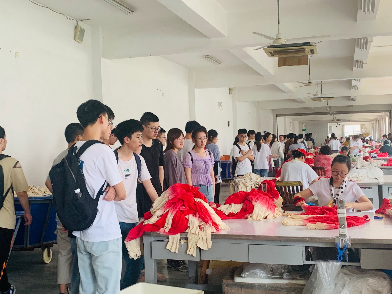 6月23日,鹽城工學(xué)院紡織服裝學(xué)院輕化工程專業(yè)師生一行106人參觀了華藝集團(tuán)。人力資源部經(jīng)理韓加梅等相關(guān)人員參與了接待。 此次的參觀活動(dòng)旨在讓學(xué)生們更直觀的了解企業(yè)生產(chǎn)流程和生產(chǎn)工藝,幫助學(xué)生們走進(jìn)企業(yè)、了解企業(yè)。師生們首先在多功能廳觀看了企業(yè)宣傳片,韓經(jīng)理向?qū)W生們重點(diǎn)介紹了企業(yè)的發(fā)展情況、校園招聘崗位需求以及大學(xué)生培養(yǎng)路徑等內(nèi)容。隨后由韓經(jīng)理和人力資源部周敏分別帶領(lǐng)學(xué)生們參觀了集團(tuán)展廳、編織、扎染、特藝三個(gè)事業(yè)部的展廳及工藝車間。參觀過(guò)程中各事業(yè)部技術(shù)負(fù)責(zé)人分別向?qū)W生們介紹了南通扎染、三維褶皺和勾棒編織系列產(chǎn)品,同學(xué)們表現(xiàn)出濃厚的興趣。 過(guò)程中,韓經(jīng)理與老師們關(guān)于如何進(jìn)一步加強(qiáng)校企合作方面做了些探討,希望通過(guò)此次的參觀,讓學(xué)生們提前對(duì)企業(yè)有新的認(rèn)知,為校園招聘工作打好基礎(chǔ),最后大家參觀了華藝工廠直營(yíng)店并合影留念。(文/人力資源部 付亞琴)
