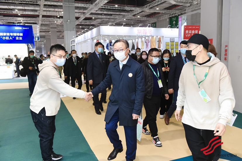 中國紡織工業(yè)聯(lián)合會會長孫瑞哲一行蒞臨華藝集團(tuán)展位